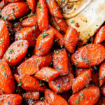 Glazed Carrots are the best side dish to practically everything! These Glazed Carrots are tender, sweet and savory coated in an easy, irresistible brown sugar maple glaze. The buttery tender carrots are a quick and easy, inexpensive side dish perfect for every day dinner but delicious enough for the holidays like Easter and Thanksgiving too. These Brown Sugar Glazed Carrots are bursting with flavor and are destined to become a new favorite addictive side for both adults and kids alike!