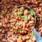 Cook on LOW for 7-9 hours or on HIGH for 3-4 hours, stirring occasionally. If the beans are too thick, stir in a little water, if not thick enough, continue to cook.