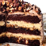 This Snickers-inspired ice cream cake is rich, creamy, chocolatey, and packed with the sweet-salty goodness of peanut butter caramel in every bite. It may look impressive, but the recipe is straightforward, tested, and foolproof, complete with step-by-step photos, expert tips, tricks, and easy variations. Best of all, it’s topped with stabilized chocolate whipped cream, so it freezes beautifully for weeks without losing its luscious texture—unlike other recipes that fall short, literally.