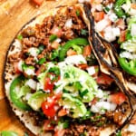 This quick taco meat recipe is unparalleled in juicy, flavor fireworks - you'll be eating it with a spoon! It's made with dynamic homemade taco seasoning , salsa, green chilies in less than 20 minutes! This taco meat can be made with ground beef or is equally fabulous with ground turkey or chicken too!