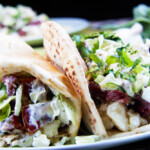 When ready to serve, remove brisket from slow cooker and scrape fat off. Cut across the grain into 1/2" strips. Transfer corned beef to a plate and cover tightly with foil while you prepare the potatoes and pitas.