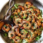 Cilantro Lime Shrimp is one of the easiest and quickest ways to prepare shrimp and also one of the most divine! The shrimp is tossed with fiesta seasonings before cooking and garlic cilantro lime butter after cooking so the juicy shrimp is exploding with flavor. This easy shrimp recipe can be cooked on the stove, in the oven or grilled (all instructions included) and it can be served with anything! Cilantro lime shrimp is a meal in itself with a side of veggies and rice/quinoa or instantly transforms tacos, salads, burritos, wraps, etc. (tons of ideas included) into the most epic meal ever!