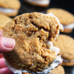 These Little Debbie's Oatmeal Creme Pies copycat are melt-in-your-mouth addicting. The cookies are bursting with buttery, chewy, brown sugar, molasses oatmeal which sand which a luscious creamy vanilla center. After one bite, you will never want to buy Little Debbies' Oatmeal Creme Pies ever again!x