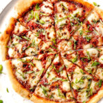 Mozzarella: Use fresh mozzarella (it will literally say “fresh mozzarella) like widely available BelGioisio brand. Fresh mozzarella will likely be located with the specialty cheeses in the deli section. Please avoid: 1) Fresh mozzarella packed in water because the cheese will weep too much and leave you with a soggy pizza, 2) cheap blocks of part skim mozzarella because as it’s not nearly as creamy and flavorful, 3) Pre-shredded mozzarella; it is coated in anti-clumping chemicals which prevent it from melting beautifully and as quickly.