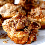 Mini German Apple Pancakes are fluffy, custardy European pancakes baked in muffin tins then loaded with caramelized apples and topped with delectable streusel - does it get any better?! These Dutch babies may look impressive but are surprisingly simple to make. Just make the batter with a couple pulses in your blender, pour into muffin tins and bake while you saute the apples and pulse the streusel together. I guarantee your entire family will fall in LOVE with this German Apple Pancake recipe!