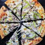This Philly Cheese Steak Pizza is your favorite sandwich in pizza form! It's cheesy, meaty, comfort food at it's most addicting. This Philly Cheesesteak Pizza starts by layering pizza dough with Alfredo Sauce followed by mozzarella cheese, juicy steak, bell peppers, mushrooms and more cheese then baked to golden bubbly perfection. It's fabulous game day food, party food, company food or just a fun dinner any night of the week. Prepare to fall in love with your new favorite way to eat Philly Cheese Steak!