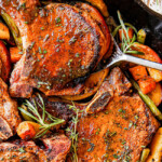 This Pork Chops with Apples recipe is the epitome of Fall all in one skillet! It not only boasts pan seared pork chops and apples but green beans and butternut squash all simmered in a sweet and tangy apple cider pan sauce that’s lick the plate delicious. This cast iron pork chops recipe is incredibly juicy yet lean, fresh yet comforting, healthy yet hearty and most importantly, it’s layered with flavor and texture for days! I’ve also included tips and tricks on how to cook the juiciest pan seared pork chops EVER even if you've never made pork chops before.