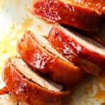 Rest: Transfer the pork to a cutting board and let rest 10 minutes before slicing. Brush with sauce once more before slicing into thick slices. Serve with remaining Chili Dijon Sauce on the side.