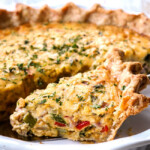 Whole quiche: You can assemble and bake the entire quiche before serving it. Quiche will last up to 4 days in the fridge, but it’s best within the first 24 hours of making it. It’s delicious served cold, room temperature, or warm, but I’m partial to warm.