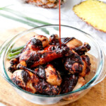 When chicken is done and cooling (you can remove skin at this point if desired), whisk 2 teaspoons cornstarch to the reserved marinade/sauce. Add to a large saucepan and bring to a boil, stirring constantly. Reduce heat to medium high and let simmer (it will bubble a lot) for approximately 5 minutes, stirring occasionally, or until sauce has reduced and thickened. Let sit 3-5 minutes to cool slightly then pour over chicken in a large bowl. Toss to evenly combine. Dip chicken in any extra sauce or serve over rice.