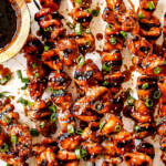 Remove chicken from oven and baste the top of the skewers with sauce. Return to oven on the TOP rack and broil for approximately 2 minutes or until starting to char. Watch closely so the chicken doesn’t burn.